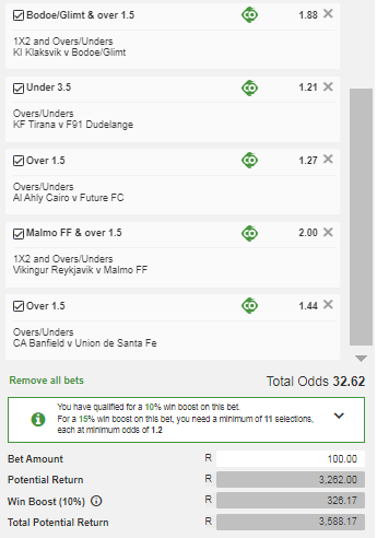 Under 3.5 = (3 or Less Goals) offers good value in low scoring soccer leagues like PSL