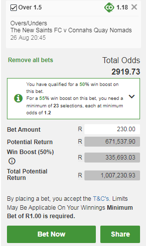 Doubles/Triple Chance Bets cost extra