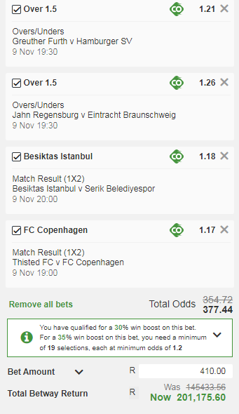 YOU CAN PLAY YOUR OWN TEAM COMBINATIONS ON BETWAY*