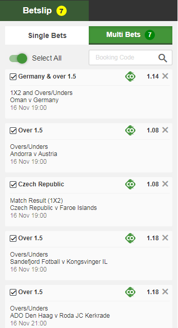 Combine several legs (Accumulator) to get higher combined odds and a bigger payout, more legs = more risk!