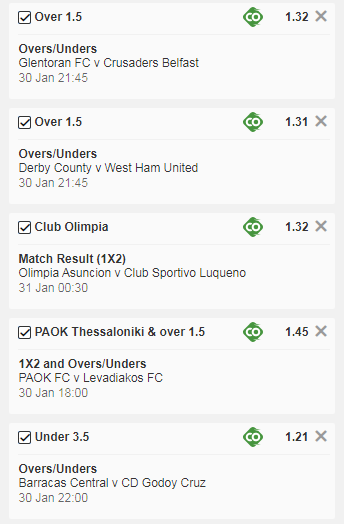 – O/1.5 = 2+ goals
