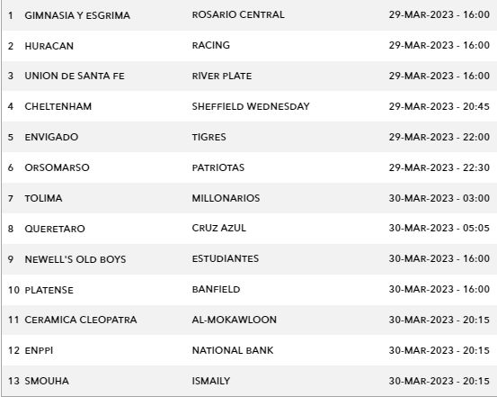 Sportstake 13 Fixture – Wed 29 Mar