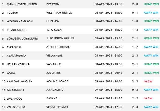 Sportstake 13 Results & Payouts – Sat 8 Apr