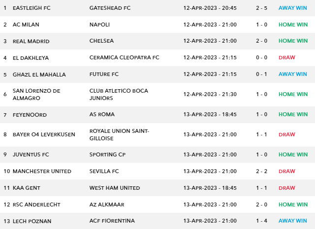 Sportstake 13 Results & Payouts – Wed 12 Apr