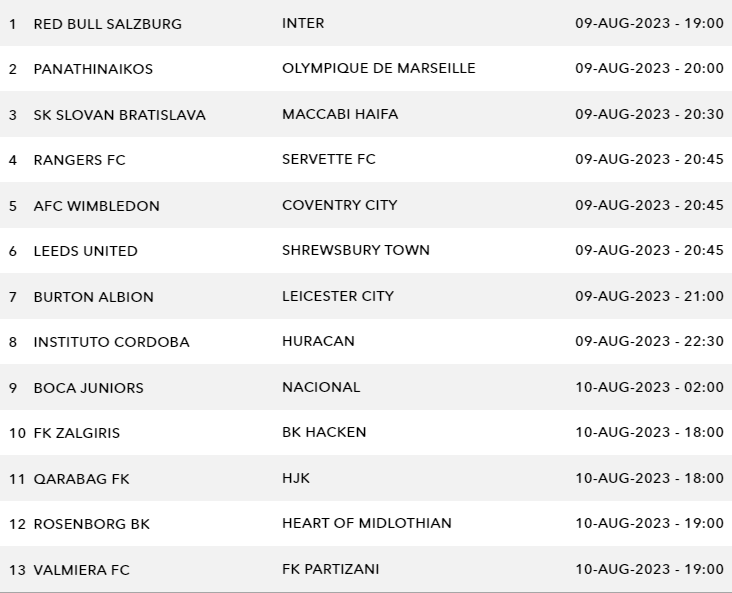 Sportstake 13 Midweek Fixture Wed 9 Aug