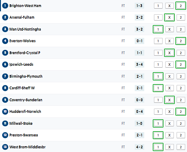 Correctly predict the outcome of (13) Matches to win the Jackpot*