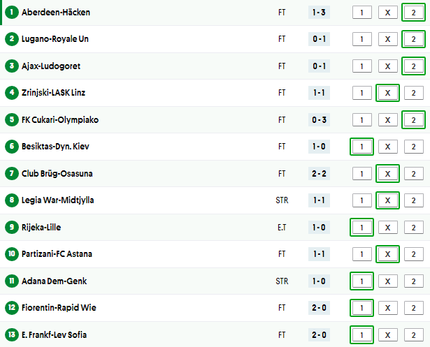 Soccer 13 Results And Payouts