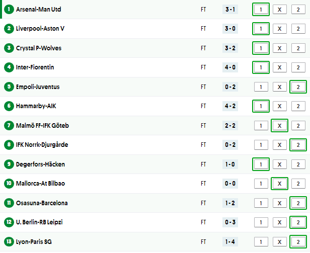 Soccer 13 Results And Payouts