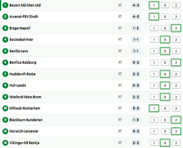 Correctly predict the outcome of (13) Matches to win the Jackpot*