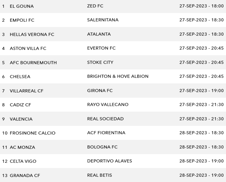 Sportstake 13 Midweek Fixture