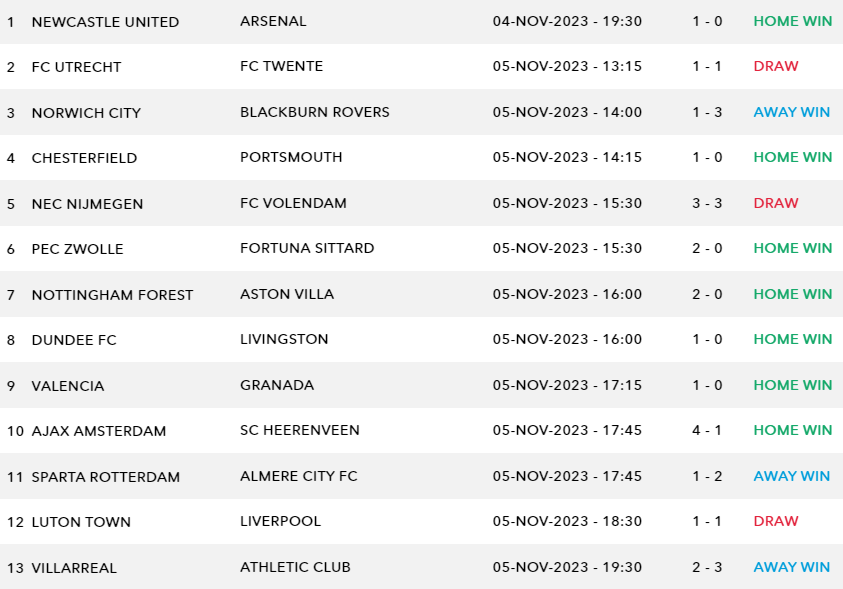 Sportstake 13 Results & Payouts Sat 4 Nov November 6, 2023 Admin Results & Payouts, SPORTSTAKE 13 RESULTS & PAYOUTS 0 Sportstake 13 Results & PayoutsSat 4 NovEveryone Loves a WINNER!Check out our free A.I. soccer tips for these (13) games Good Luck #Mapunters