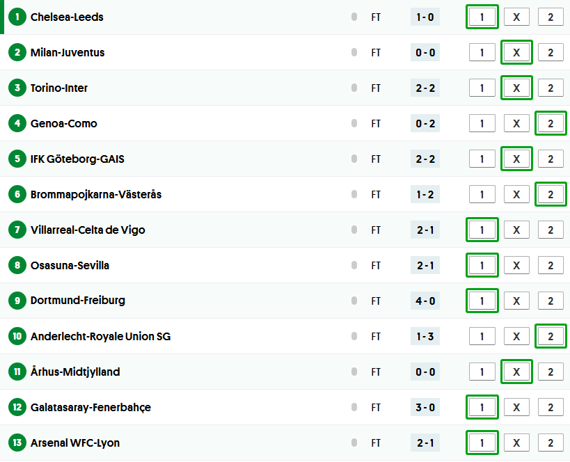 Soccer 13 Payouts – Weekend Games
